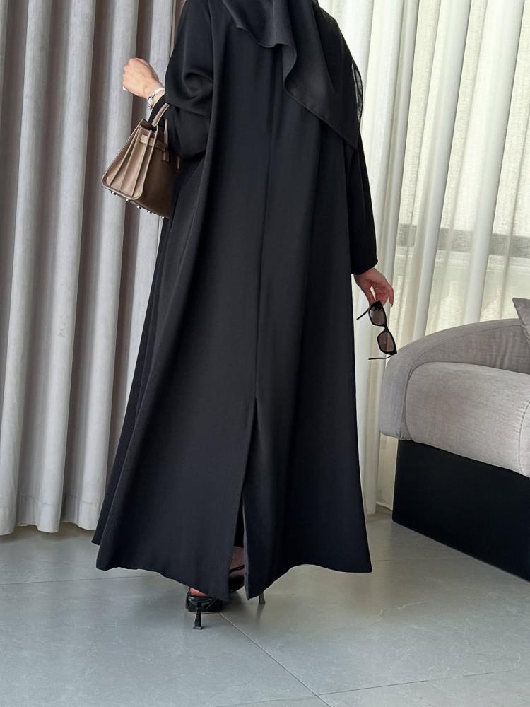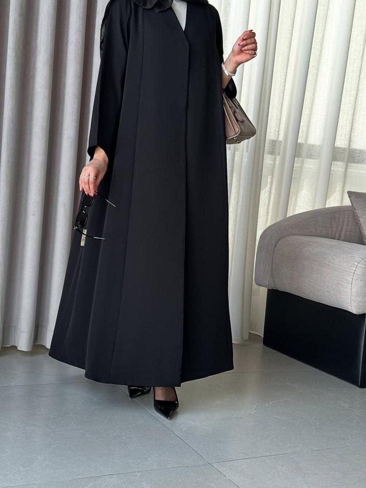 طول العباية يؤخذ من الكتف الى أسفل الكعبين (من الأمام)